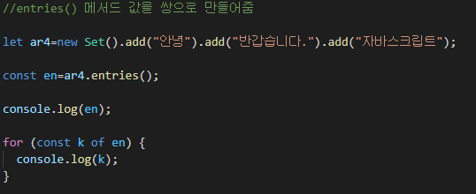 #entries() => 값을 쌍으로 만들어줌