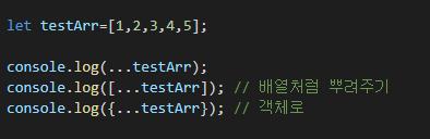 #Spread 연산자를 통해 출력하기!! -> Iterable Object의 요소를 하나씩 분리하여 전개 => 펼침 연산자