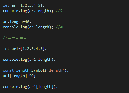 배열 객체에 어떤 속성을 넣고싶고 동시에 반복문에서 속성이 나타나지 않게 하고자 한다면 써라