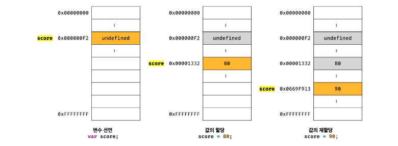 (변수를 선언하고) -> 자바스크립트 엔진에 이런 변수가 있다고 말함