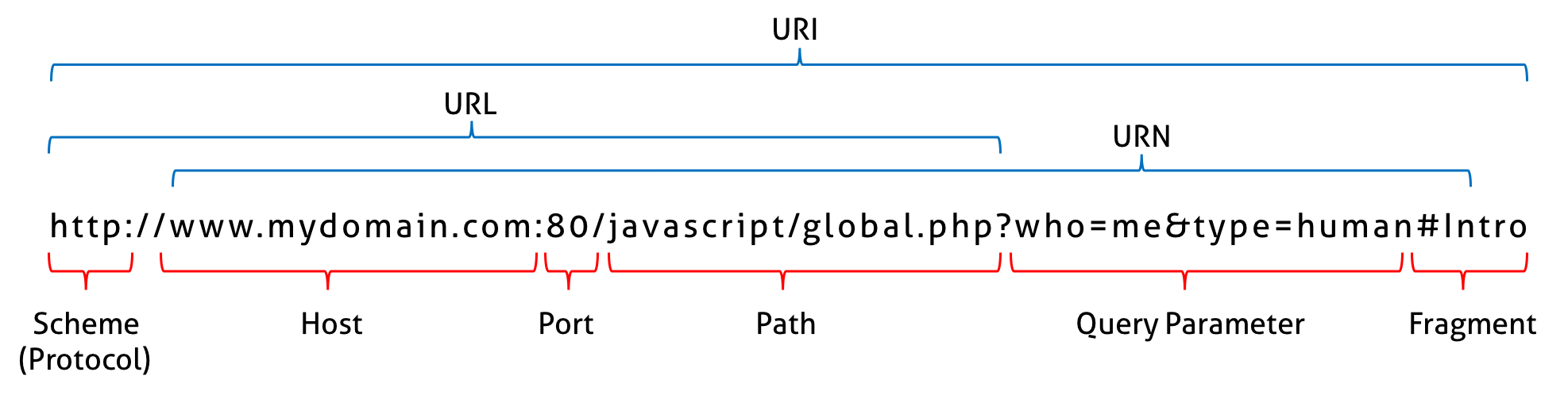 URI(Uniform Resource Identifier) 는 인터넷에 있는 접근가능한 자원을 나타내는 유일한 주소를 일관되게 표현하는 형식을 일컫는다. URI의 하위 개념으로는 URL과 URN이 있다. URL의 구조에 대해 자세히 알
