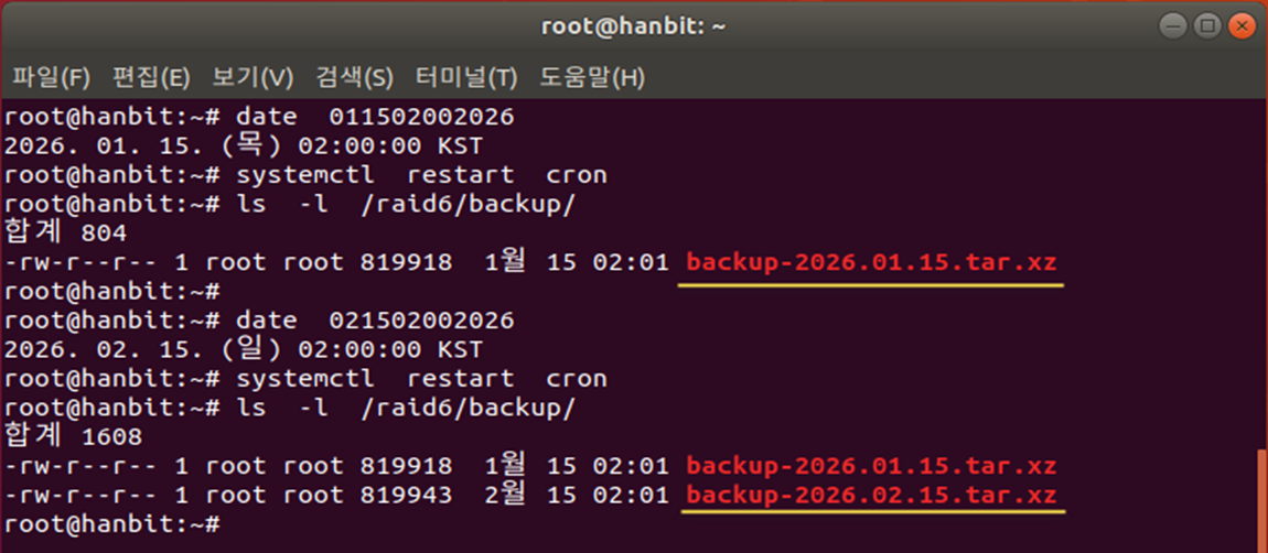->/home 폴더가 매월 15일 새벽에 자동으로 백업될 것